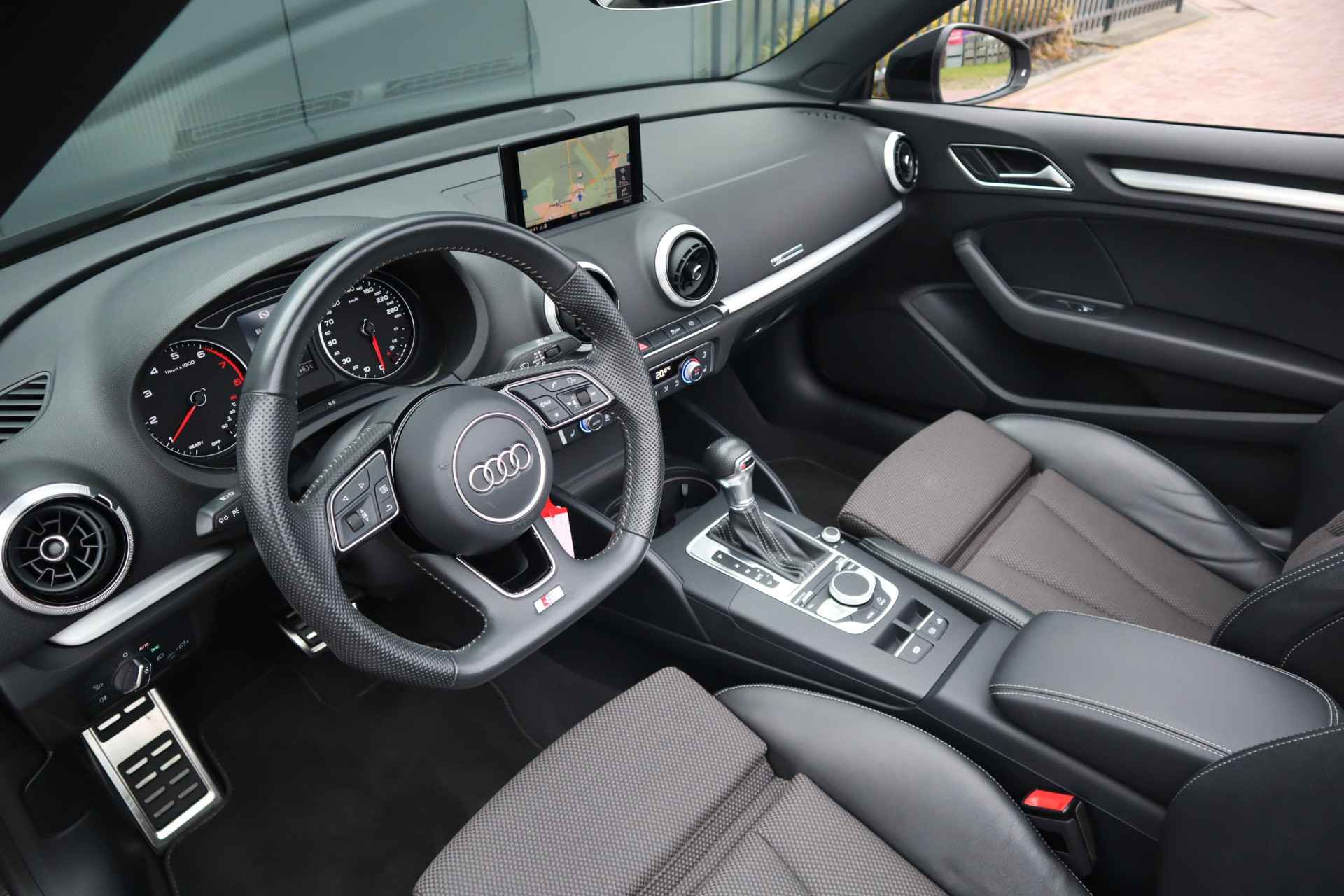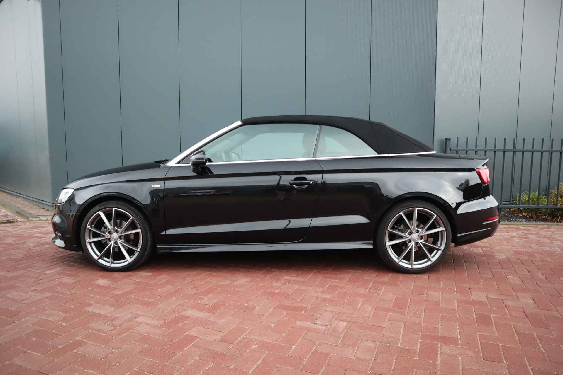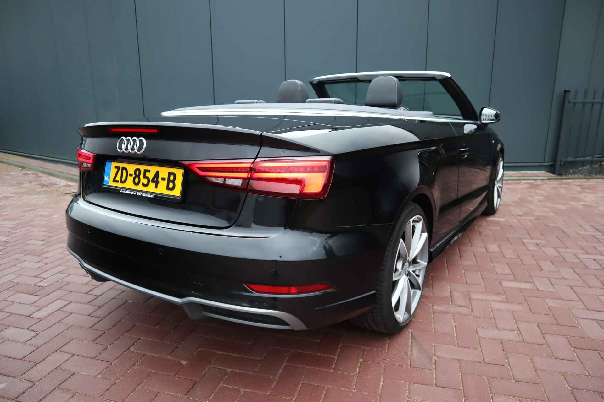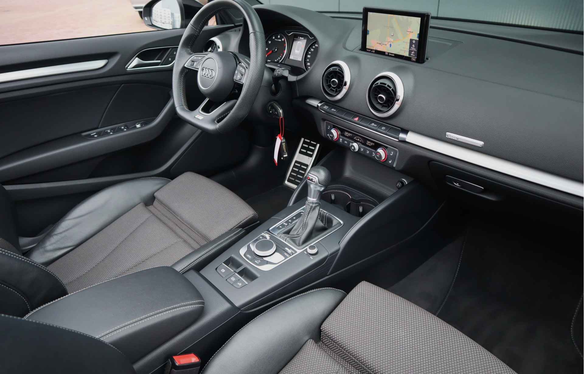 Zodra de zon zich laat zien, kunt u heerlijk genieten achter het stuur van deze cabriolet. Deze Audi A3 Cabriolet maakt een voortreffelijke indruk. Hiermee mag je gezien worden in de stad én op de weg! En heel aantrekkelijk is de stoere, sportieve S-Line styling. In deze auto vindt u een benzinemotor en een automatische transmissie. De verwarmbare voorstoelen benadrukken nog maar eens dat we hier te maken hebben met een regelrechte verwenauto voor bestuurder en bijrijder. Scherpe bochten, pittige acceleraties? In de sportstoelen blijft u altijd in positie. Verder is de Audi uitgerust met: 19 inch lichtmetalen velgen, LED koplampen, sportonderstel, halflederen bekleding, warmtewerend glas en snelheidsafhankelijke stuurbekrachtiging.