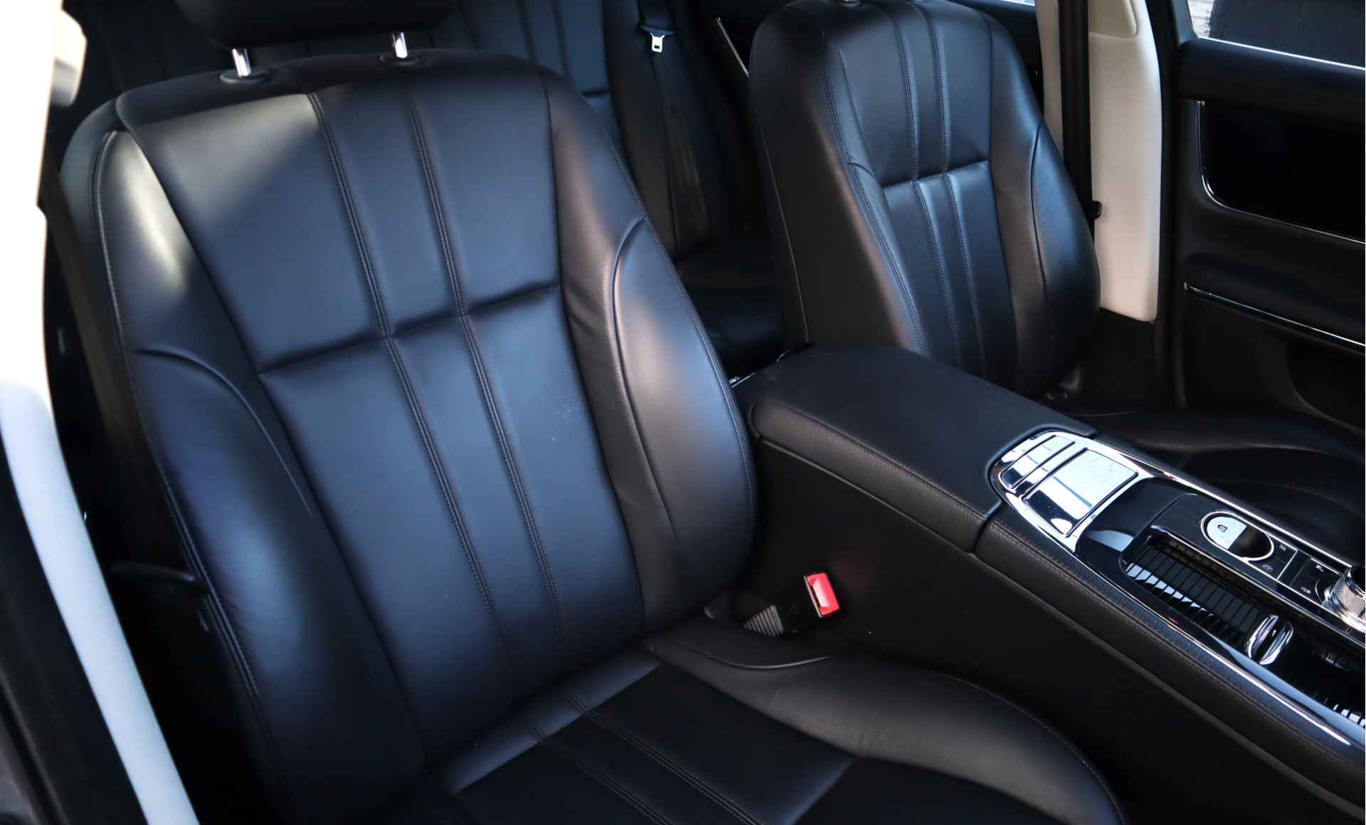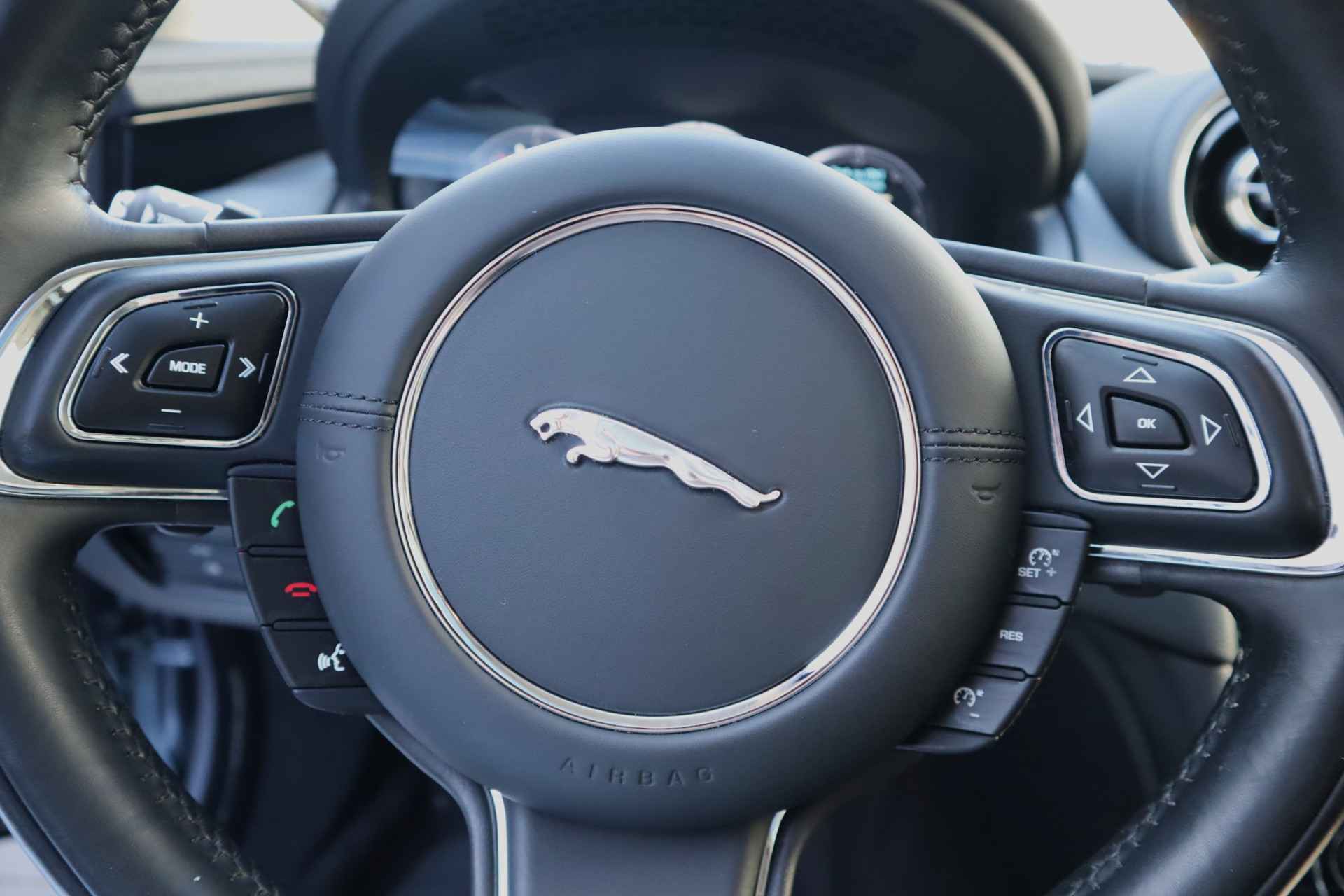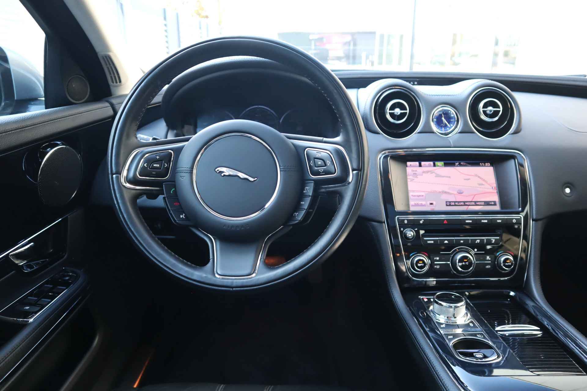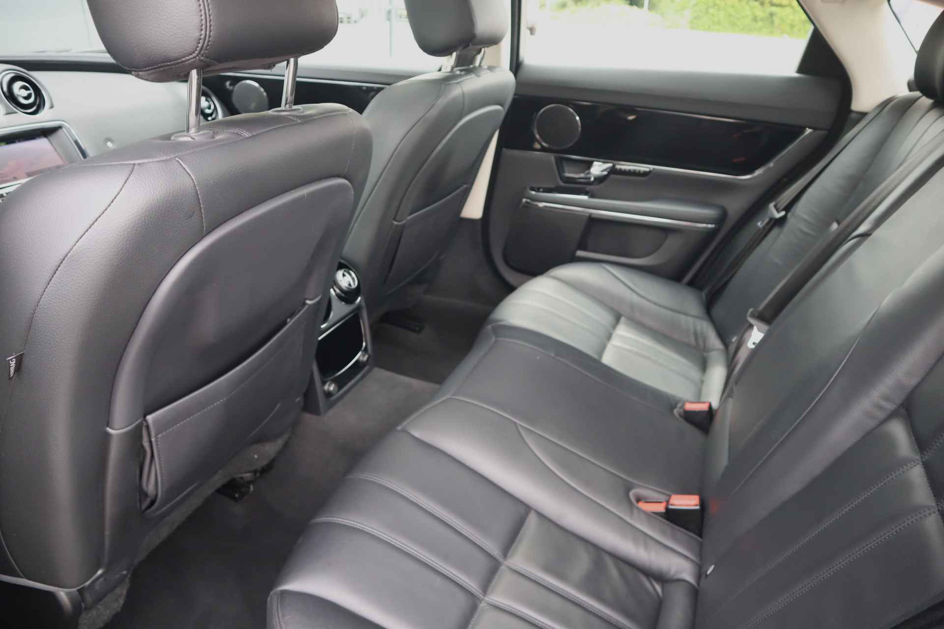 Altijd achter zicht, nooit meer nekkramp! De achteruitrijcamera maakt het supermakkelijk. Natuurlijk is er ook electronic climate control aanwezig. De regensensor reageert op de neerslag die op de voorruit belandt. Van een paar spatjes tot een hoosbui: de ruitenwissers weten wat ze te doen staat. Lekker koersen op een constante snelheid: daarvoor zorgt de cruise control. Een mooie eigentijdse optie is de keyless entry: zonder sleutels gaan alle sloten open zodra u in de buurt bent! Deze Jaguar is voorzien van navigatiesysteem met harde schijf, automatisch dimmende binnenspiegel en centrale deurvergrendeling met afstandsbediening.